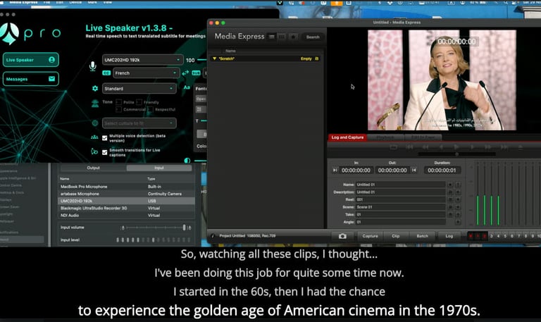 Répondez aux exigences de production TV et grand format avec une solution de traduction robuste. OHAIO génère un flux de données compatible avec vos mélangeurs (vMix, Tricaster) pour une incrustation propre en Open Captions ou Closed Captions. Que ce soit pour des duplex internationaux ou des plateaux multi-langues, assurez une continuité de service impeccable avec une reconnaissance vocale de précision chirurgicale.
